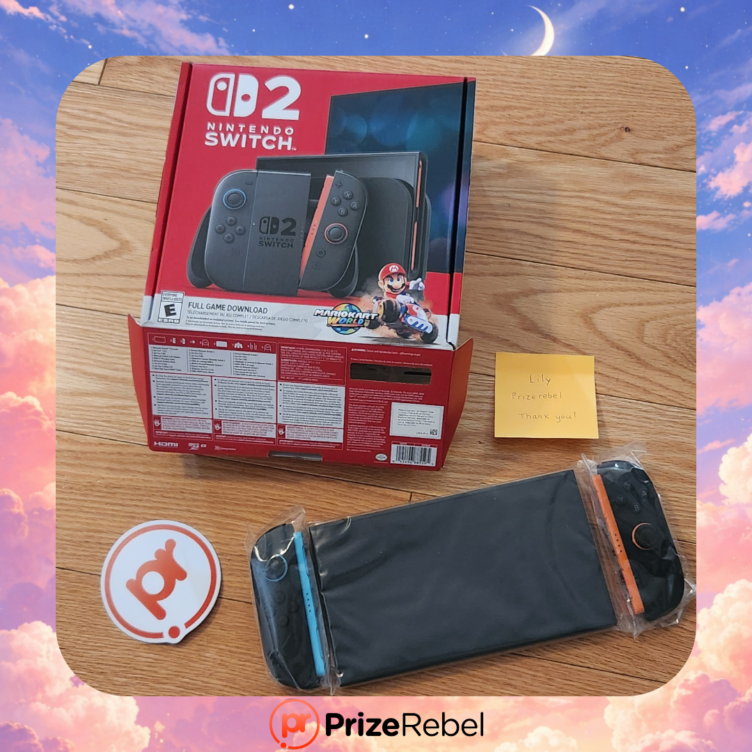 "I received the Switch 2 and I'm so grateful to the Prizerebel team for such a wonderful surprise! I will definitely be using it well!