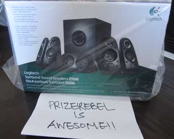 I once again want to thank Prizerebel. Ever since i joined back in mid 2008, Its just been Free Prize After Free Prize. I am at almost $3000 right now, and making that could not be easier (and Free-er!) Their Support is great, their referral system is amazing, but the best thing about this site is how much they actually care about the user. Here is a pic with my most recent stuff, including: Rock Band 2, Zune 30GB+ Accessories, Nintendo DSi, Wii Accessories (over $200 worth of Wii points!), Wii games, Clothes, etc. Thanks again Prizerebel