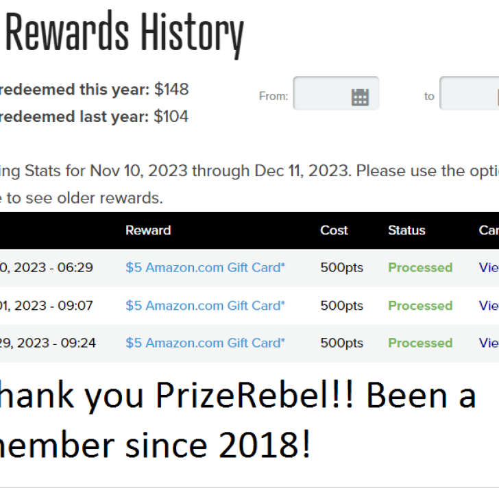 I've been a member since 2018 and PrizeRebel always pulls through with the best offers and surveys to get rewards! Thank you for all the rewards, PrizeRebel.