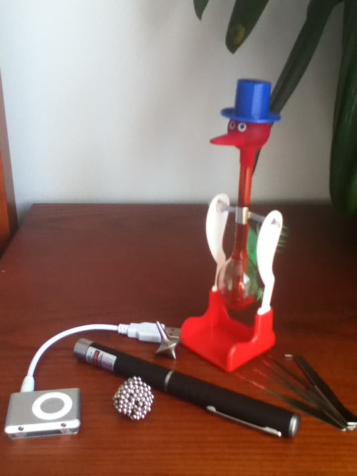 1)A Dippy Bird, 2)Replica of the Inception totem, 3)Ipod-Shuffle 2nd gen charger, 4)Green laser, 5)256 mini Magnets, 6)A set of 5 Lockpicks. A Thank you to Prizerebel for not making me spend money on stuff like these!