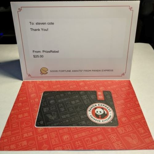 Came in mail today. Saving for thrip to Universal Florida and there is a Panda Express at City Walk there. Thank you PrizeRebel.